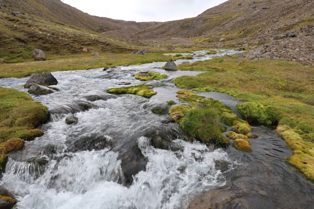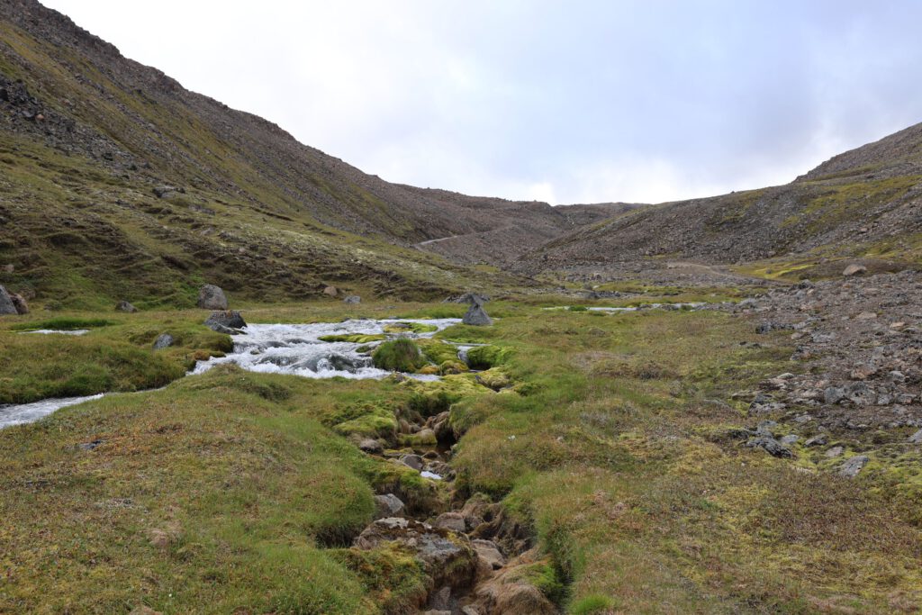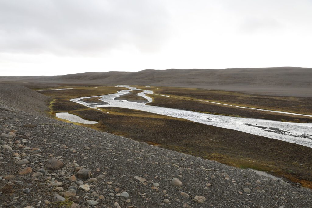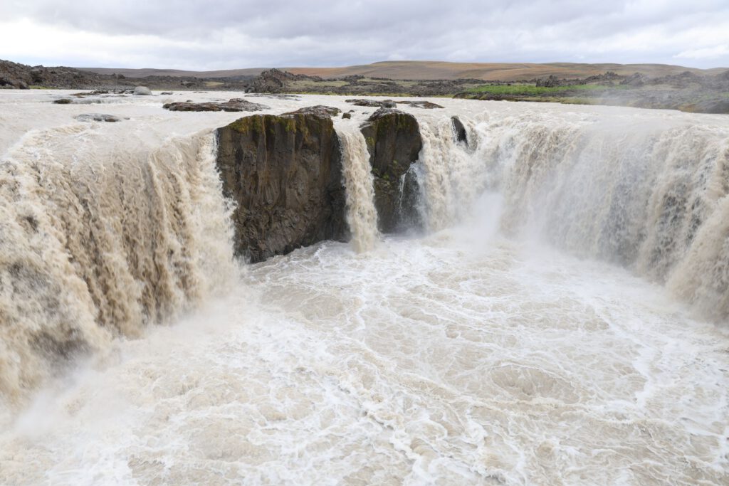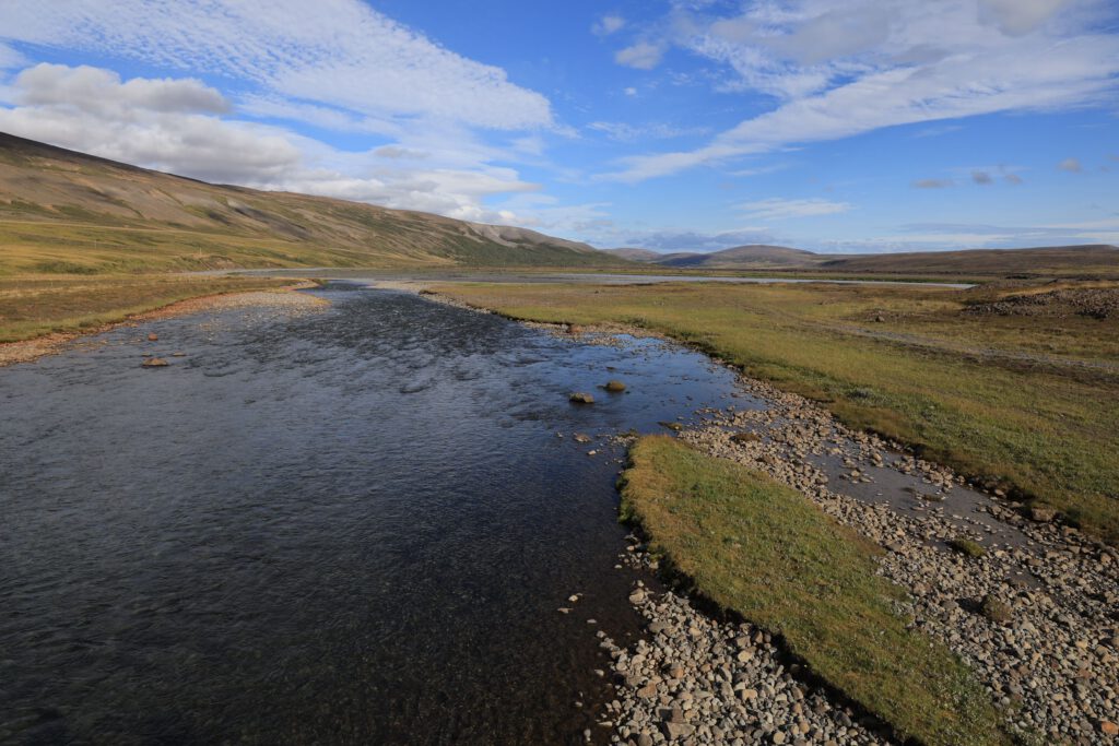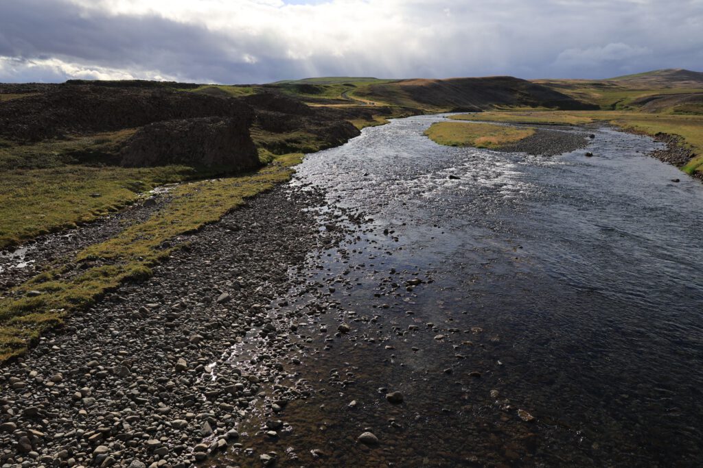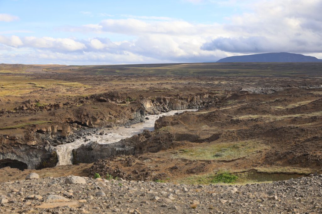 Kurz nach 9 Uhr fahren wir ein paar km zurück bis kurz vor den Godafoss und biegen rechts auf die F26 ab. Zuerst ~20km  schnurgerade die unbefestigte Straße entlang