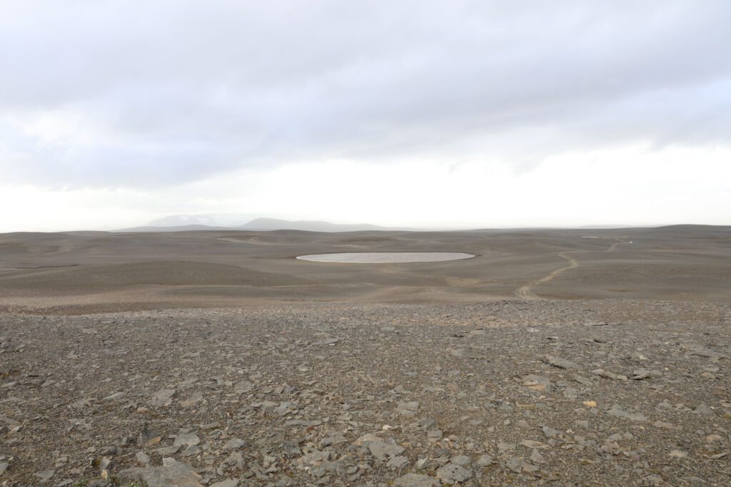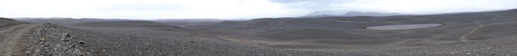 Nach dem 35° warmen Bad geht’s wieder auf die Mondlandschaft-Piste und nach fast 50km grobe Lavafeldpiste runter ins Tal. Gefälle geschätzt 45°
