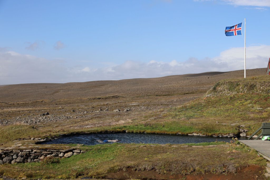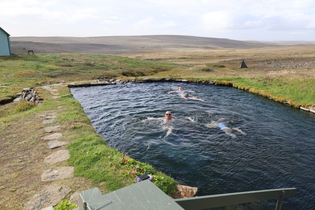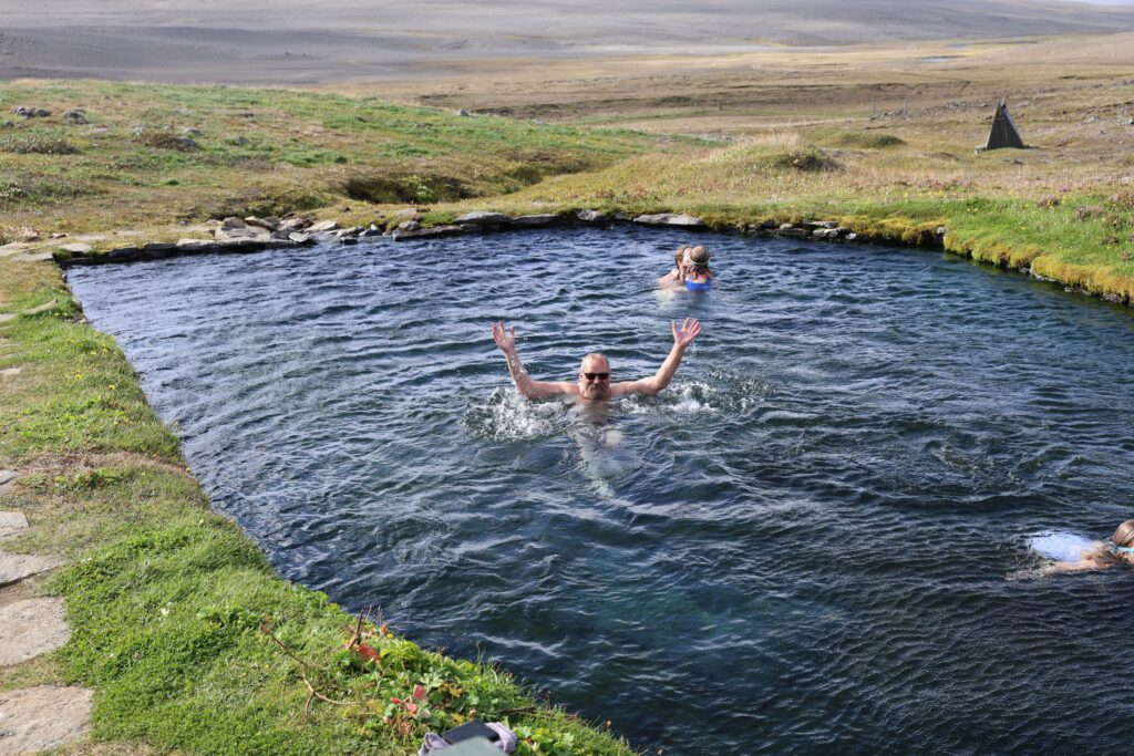 Das stell ich mir auch lustig vor: so viele menschenleere km und dann 2 Badende im heißen Becken mitten in der Landschaft.