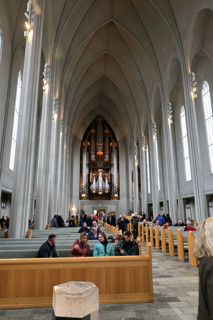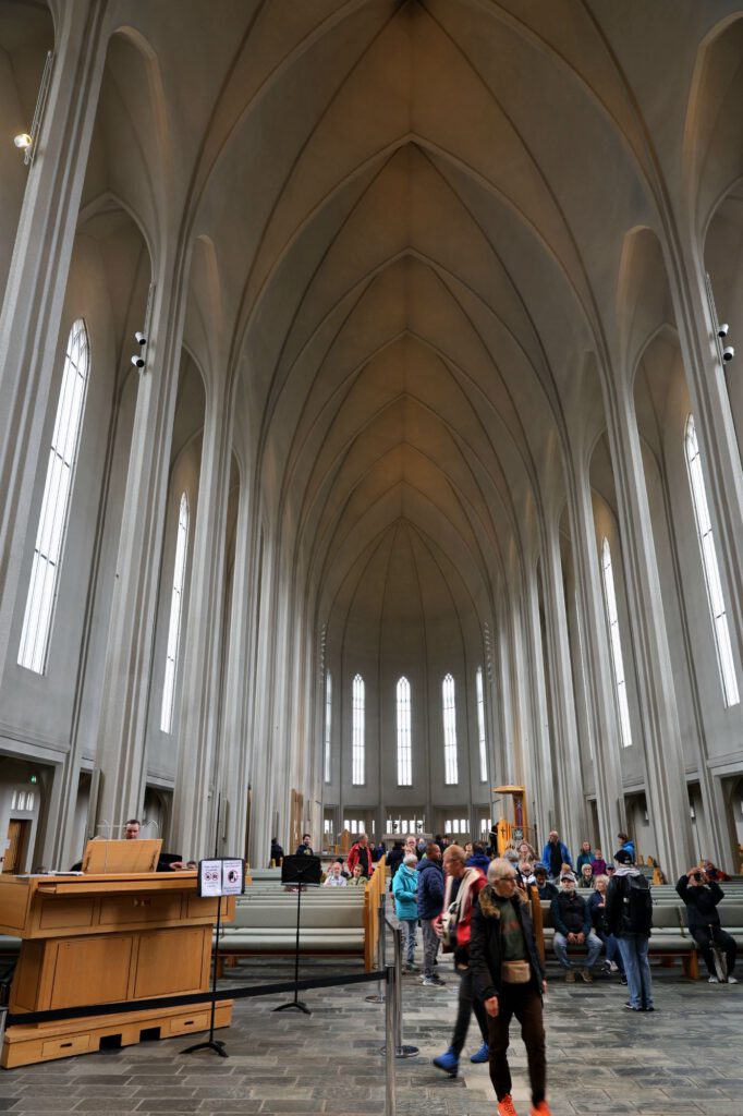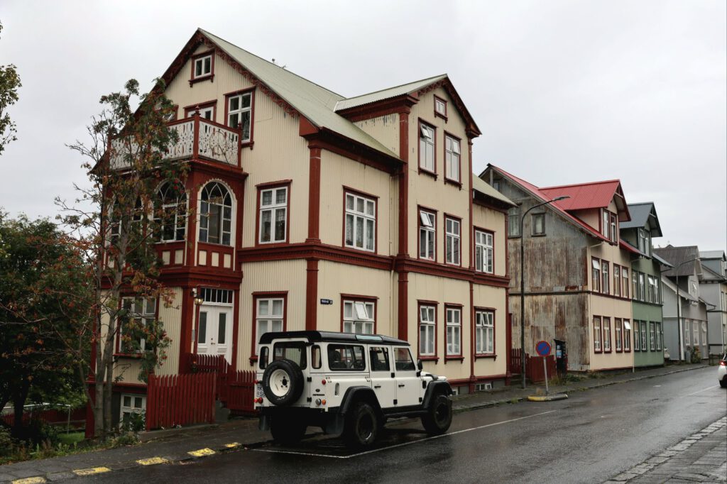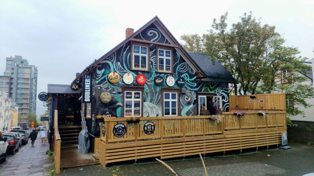 Wetterbericht sieht heute nicht gut aus für Motorradtour. Ab 11 Uhr fängt es an. Haben zuvor die Mopeds in den Campervan verladen und entschließen uns mit dem Campervan nach Reykjavik zu fahren. Stellen den am Leuchtturm ab und fahren mit dem öffentlichen Bus ins Zentrum. Verpassen aber die richtige Stelle zum Aussteigen und fahren bis zum Busterminal weiter. Dort steigen wir in einen anderen Bus ein und fahren zurück ins Zentrum. Handy oder Kreditkarte im Bus an das Lesegerät halten, dann lacht dich ein grüner Smiley an und du hast deine Fahrkarte für 4,70€ für die nächsten 75 Min.  So einfach kann’s sein. Beim Aussteigen fängt es zu regnen an und das hört leider heute nicht mehr auf. Also Regentour durch Reykjavik