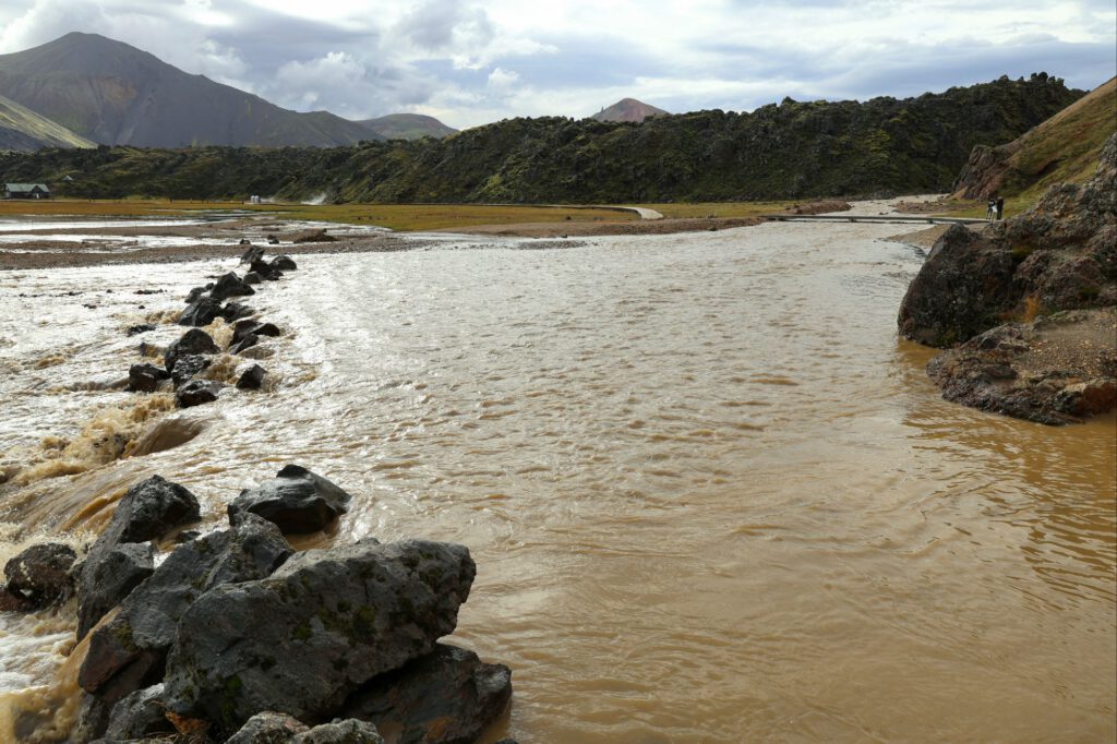 Dann nach 70 km guter Offroad Straße in Landmannalaugar angekommen. Viele Touristen mit 4×4 Fahrzeugen hier. Hier eine große Furt, die uns dann doch zu tief war