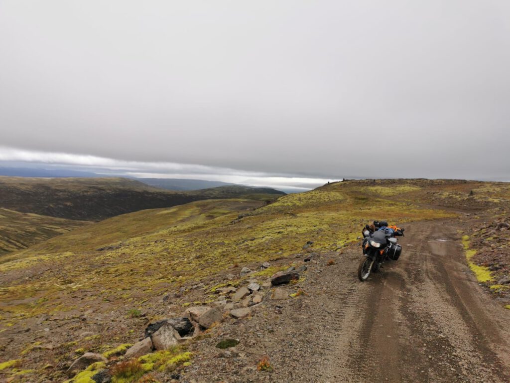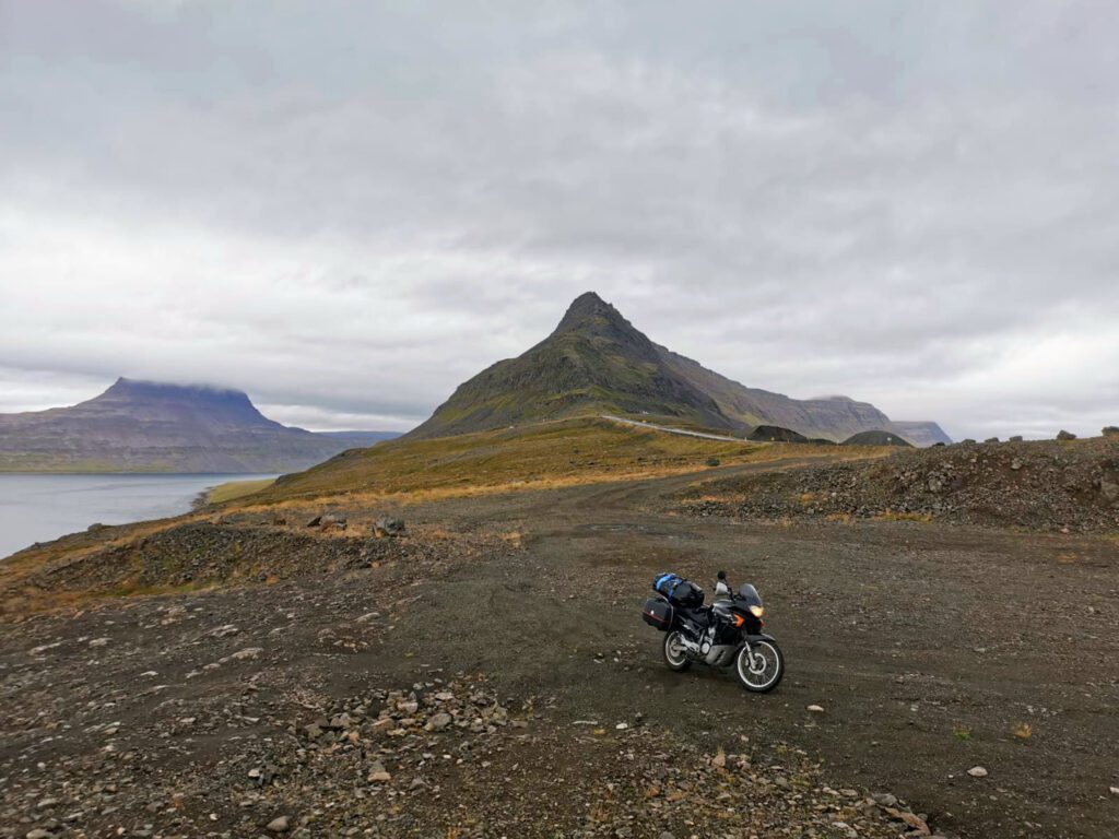 Die Fjordstraße rauf und runter, mal Gegenwind, mal Rückenwind. Die Berge immer auf der rechten Seite. Die Landschaft erinnert etwas an Norwegen. Fotos haben wir wenige gemacht, weil es immer wieder genieselt hat und der Fotoapparat trocken in Hans’s Koffer verstaut war.