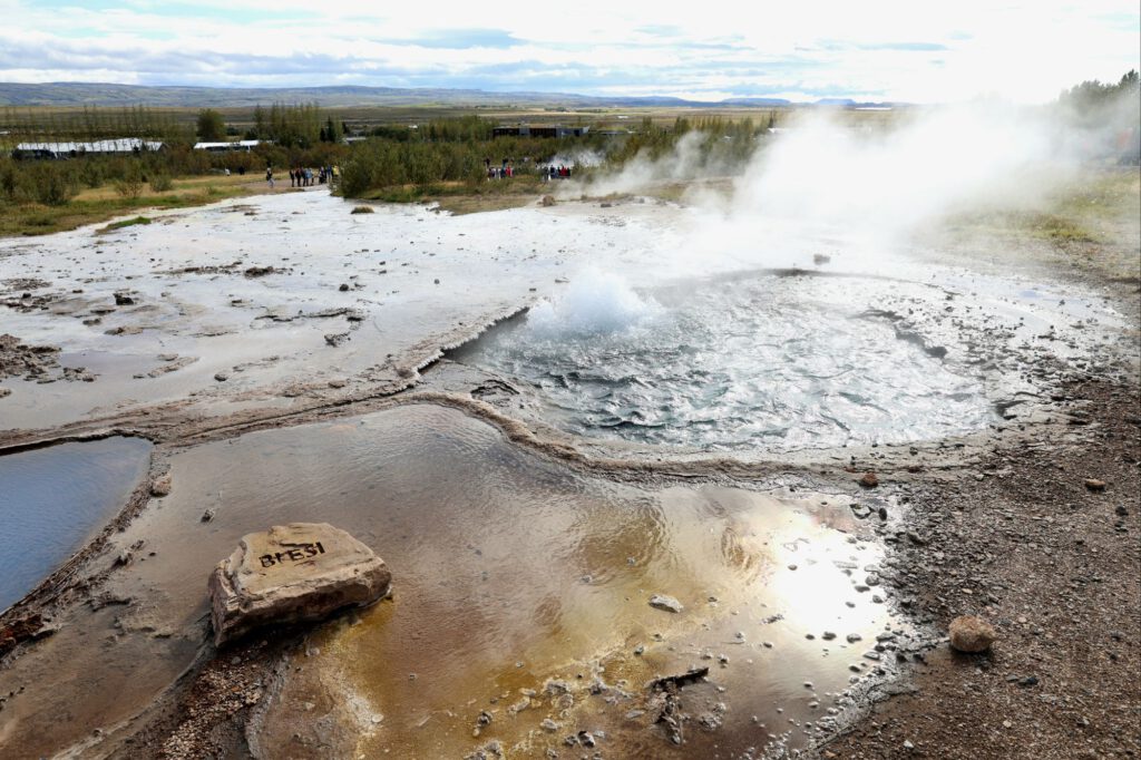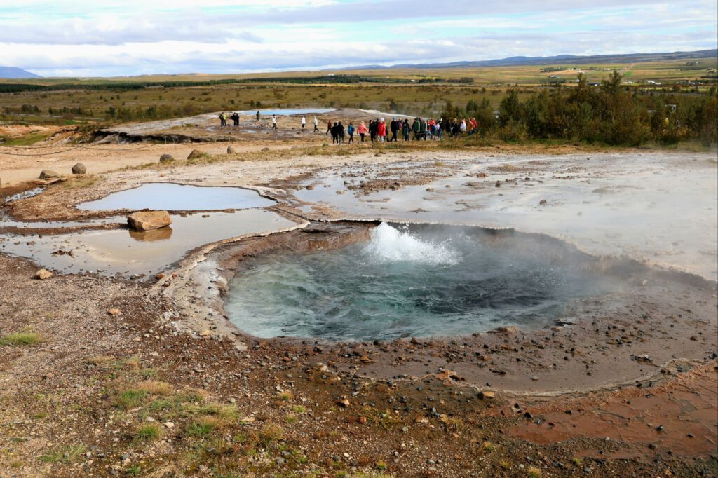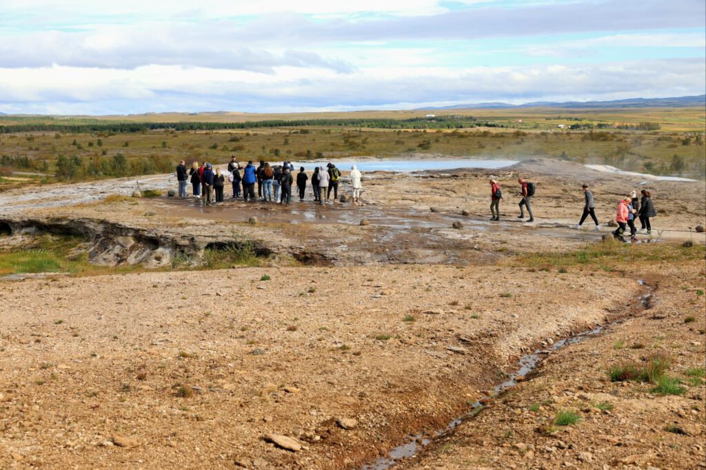 Am Geysir stehen Menschenmassen