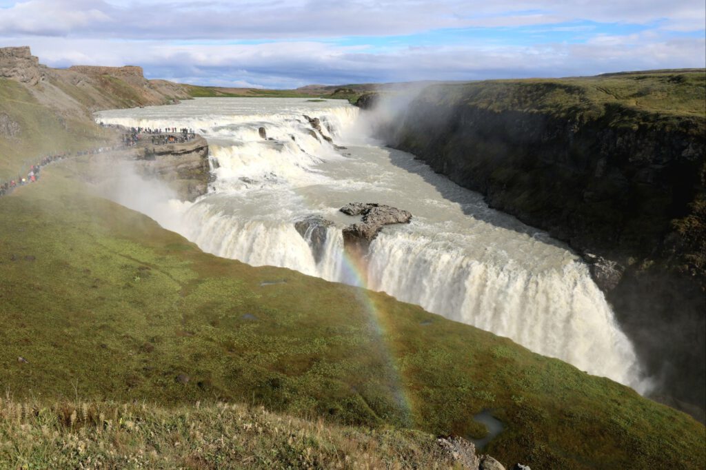 Letzte Station ist der Gullfoss Wasserfall. Da stehen mind. 20 Reisebusse und hundert Mietwagen