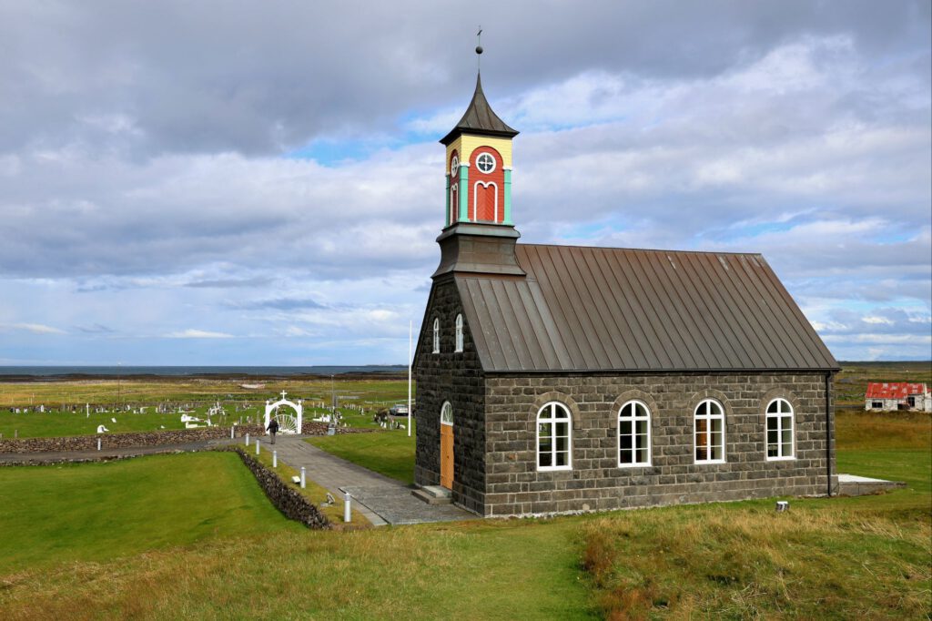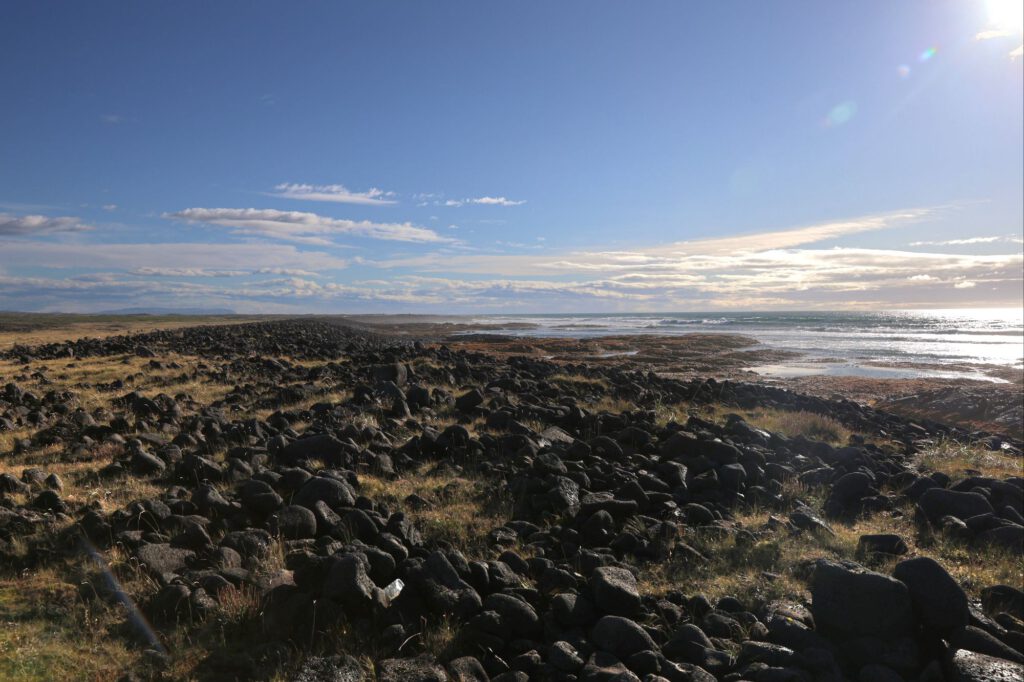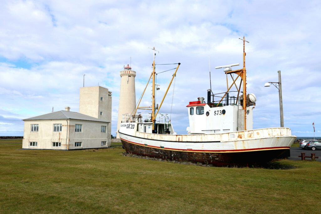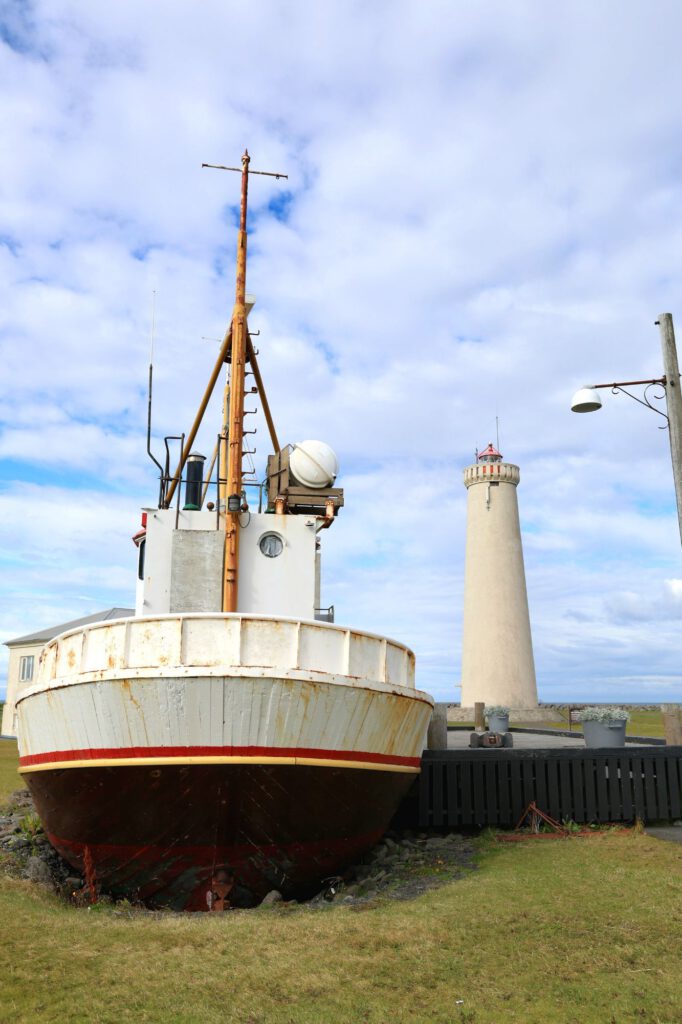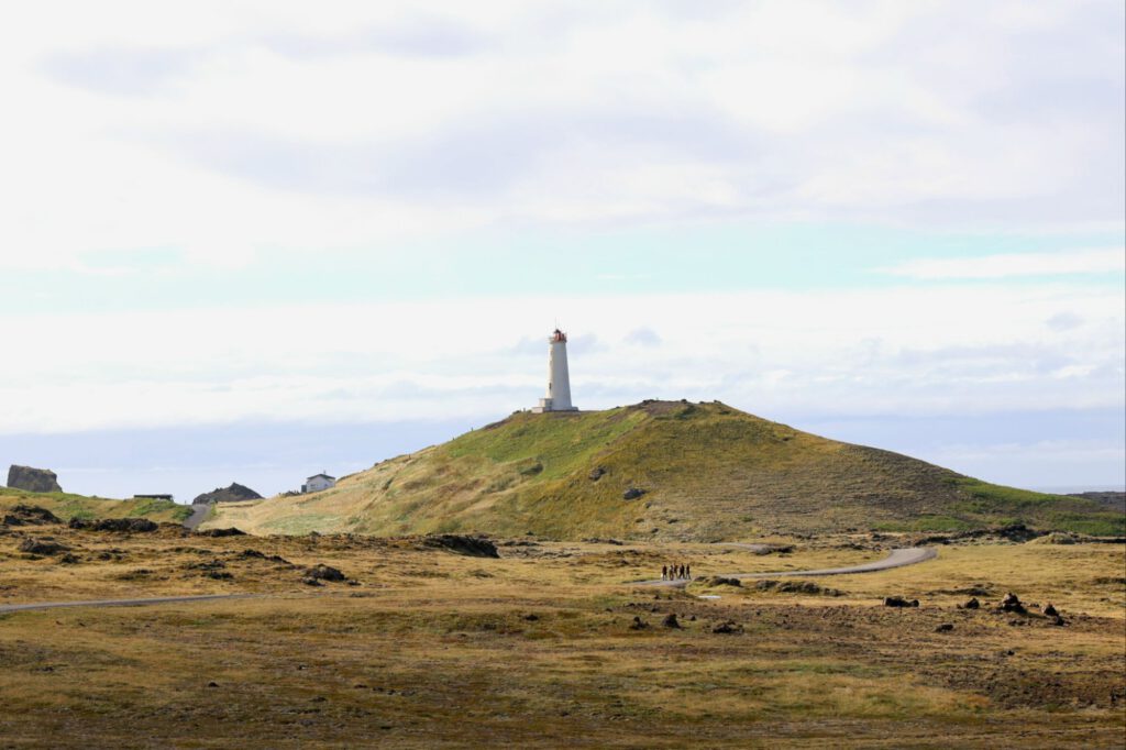 Als wir um 7:30 Uhr aufstehen scheint die Sonne. Wir laden die Motorräder aus, frühstücken und fahren los. Wir wollen die Halbinsel unterhalb von Reykjavik erkunden. Ein orangefarbene Leuchtturm – wir biegen links auf die Schotterstraße ab