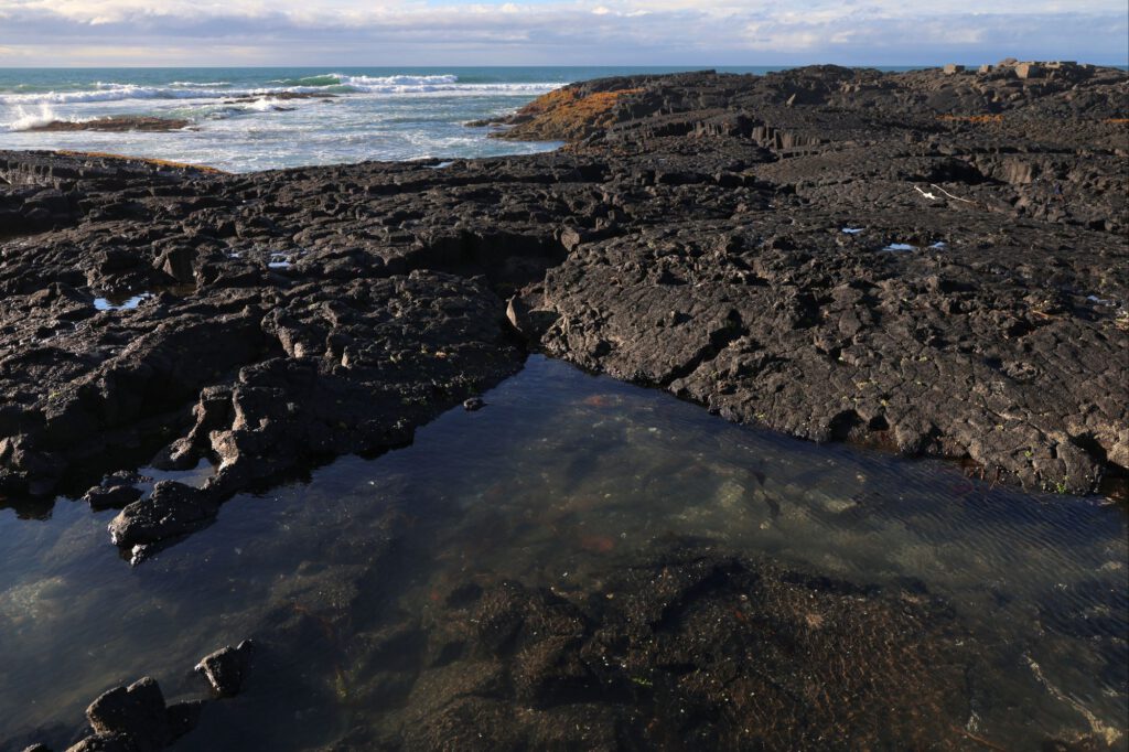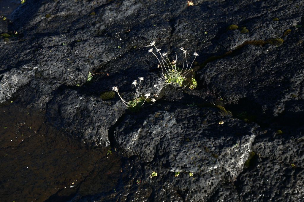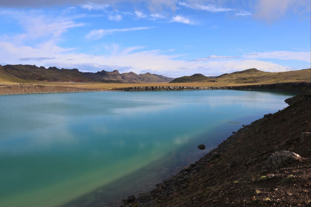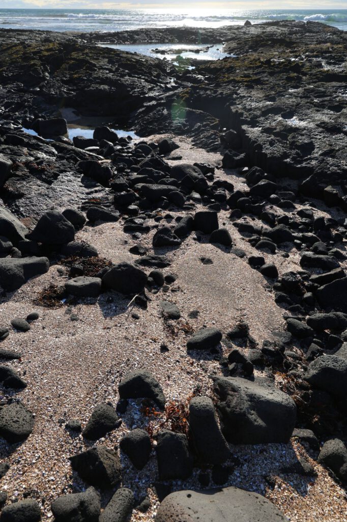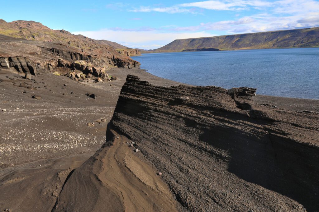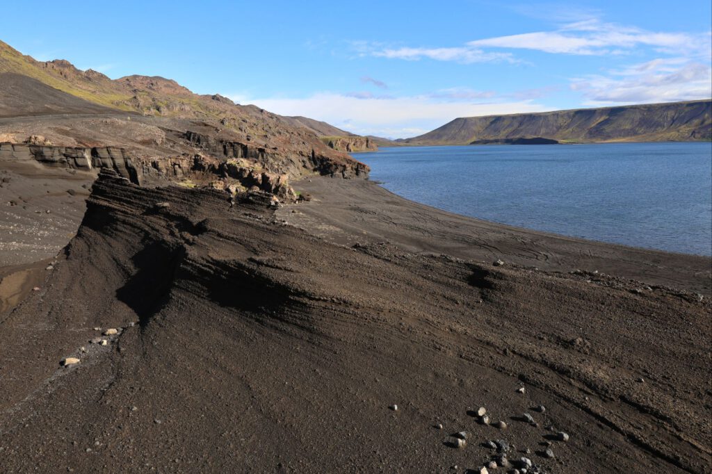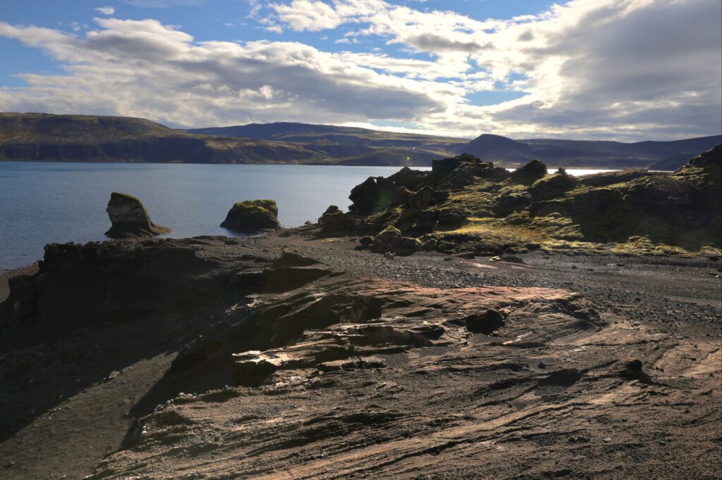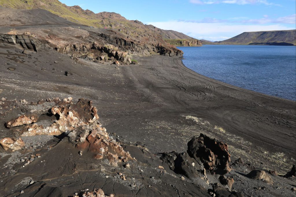 Gleich danach ein schwarzes Lavafeld mit einem See