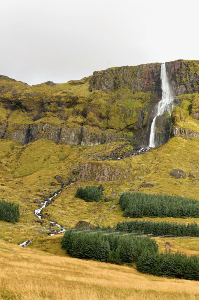 Ein wunderschcöner Wasserfall und dann die eindeutig durch Vulkanismus entstandene Steinküste. Nur schade wenn das Wetter nicht mitspielt.