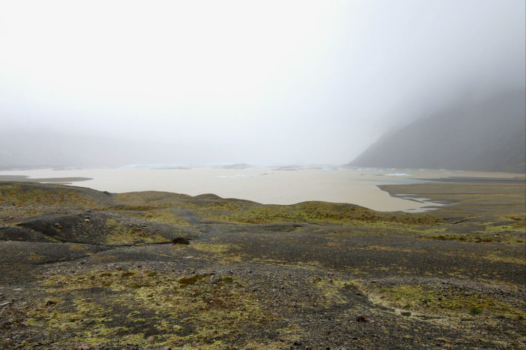 Das ist eine Gletscherlagune im Süden Islands, südlich des Vatnajökull, zwischen Jökulsárlón und der Stadt Höfn gelegen. Sie wird von der Gletscherzunge Heinabergsjökull gespeist, die wiederum ein Auslassgletscher des großen Vatnajökull-Gletschers ist. Als wir dort ankommen sieht man aufgrund des Nieselregen fast nichts