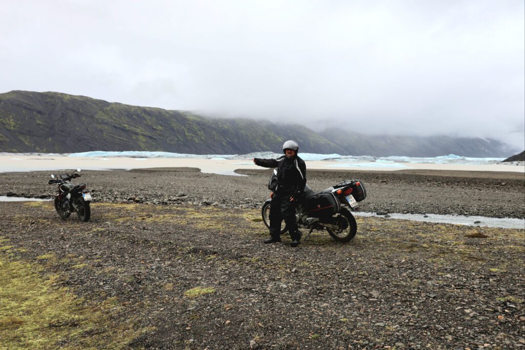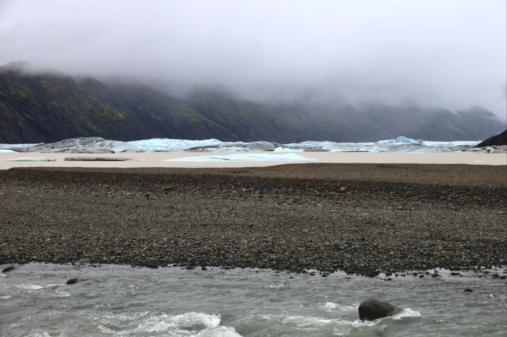 Zum Glück treibt der Wind die Wolken einige Zeit später etwas weg und wir können ein paar Fotos machen. Eigentlich wollten wir auf dem Gletschersee eine Kajaktour machen, aber die Saison ist schon beendet.