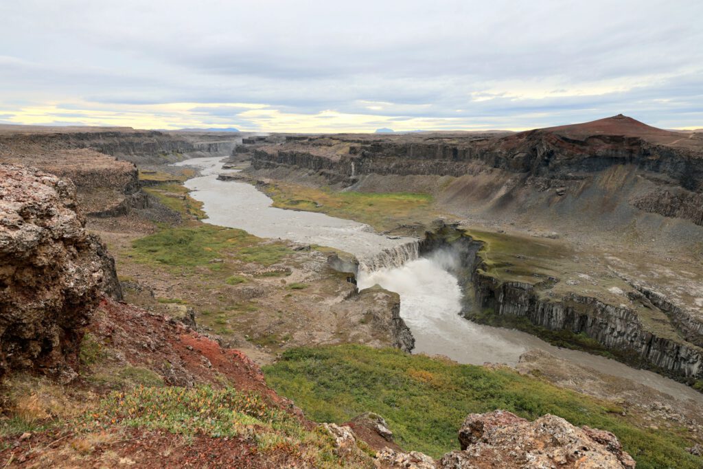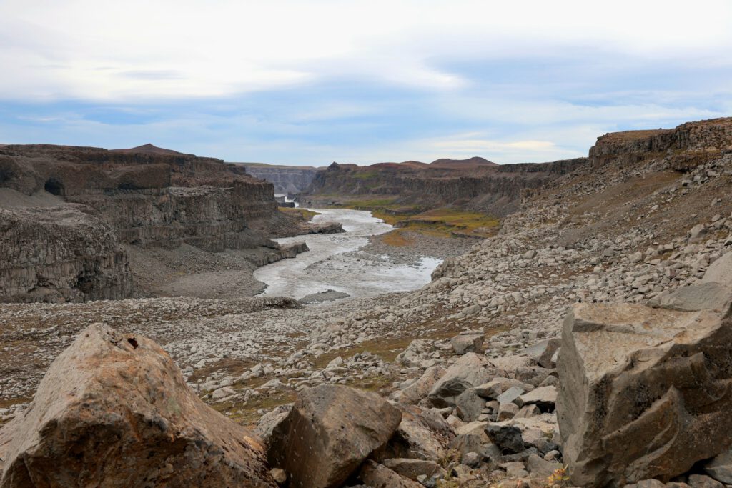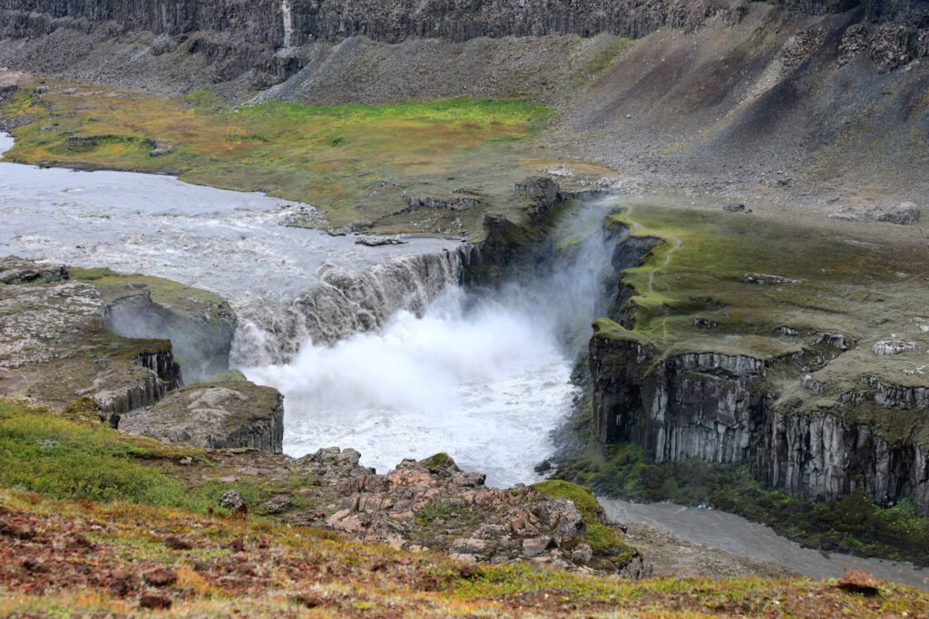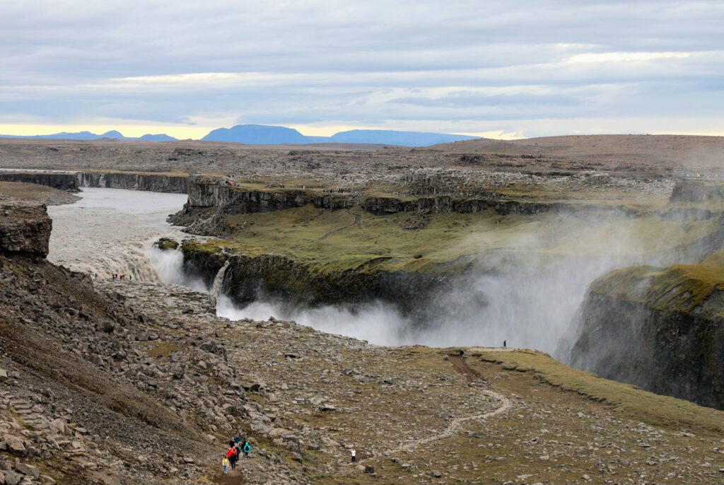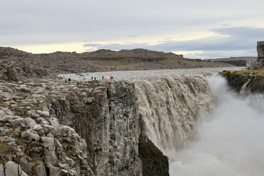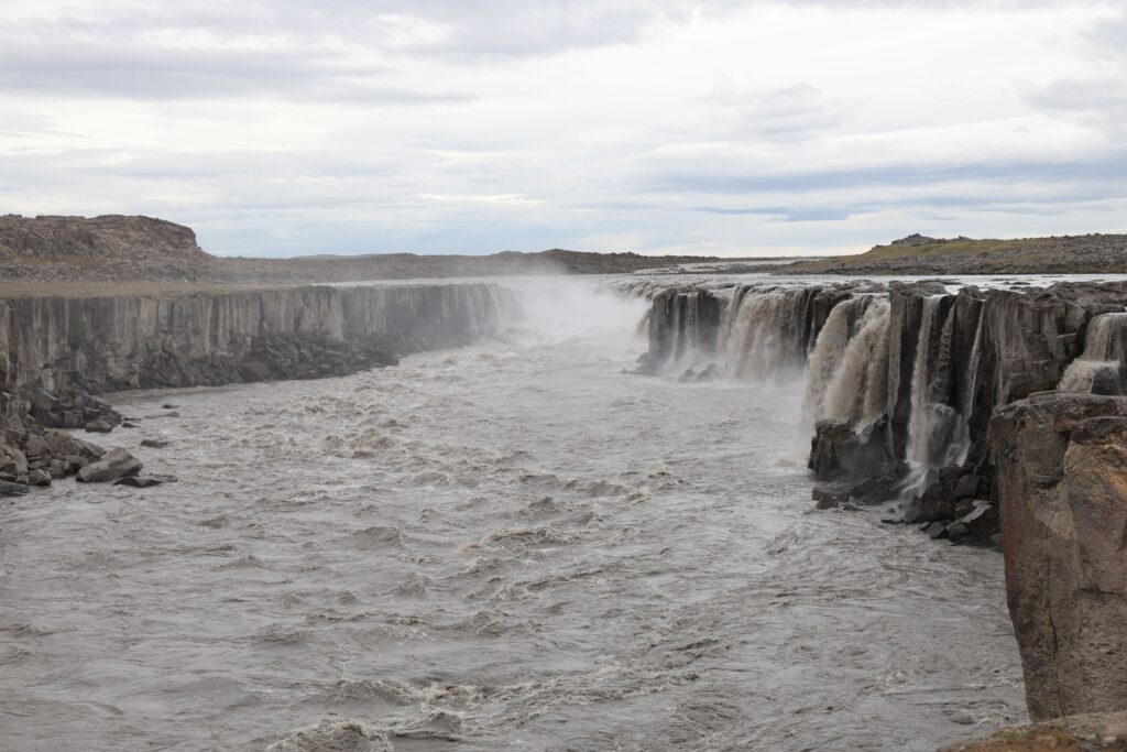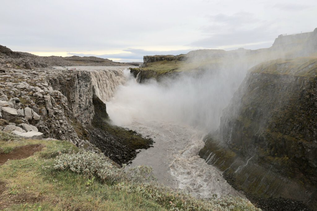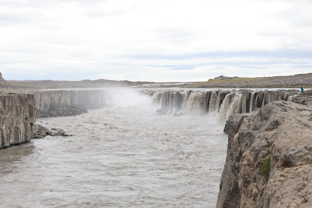 Weiter zur Brücke im Norden – dann auf der Westseite des Flusses wieder runter bis zum dortigen Aussichtspunkt des Dettifos. Sehr touristisch dort alles angelegt und viele Besucher. Eine kleine Wanderung zum Selfos und zum Dettifos