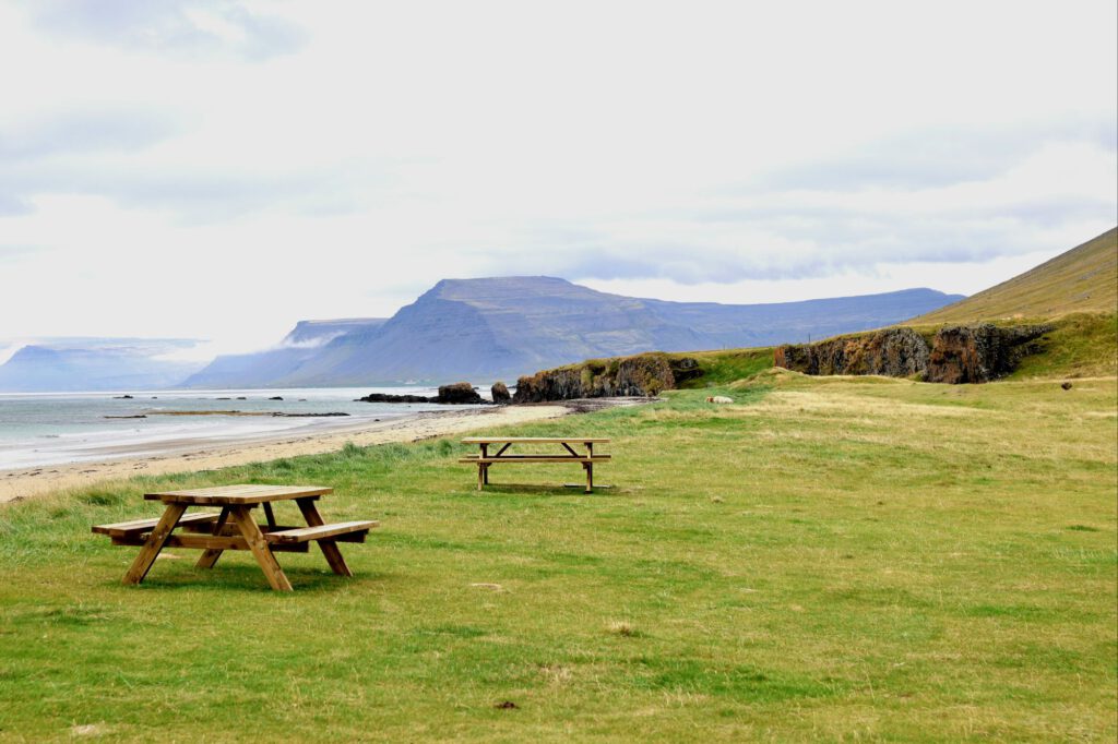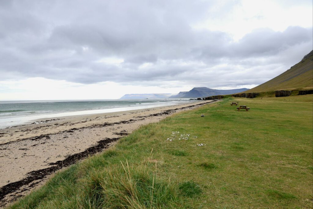 In Patreksfjörður noch schnell zum einzigen Lebensmittelladen seit dem Start heute früh – eigentlich seit mehreren hundert Kilometern. Der schließt um 15 Uhr am heutigen Samstag. Danach einchecken am Campingplatz. Da ist niemand, nur ein Zahlterminal in der Campingplatz Küche. Self Check In ! Unsere Zelte sind in 4 Sek aufgebaut. Jedes 2 Sek. – stimmt!