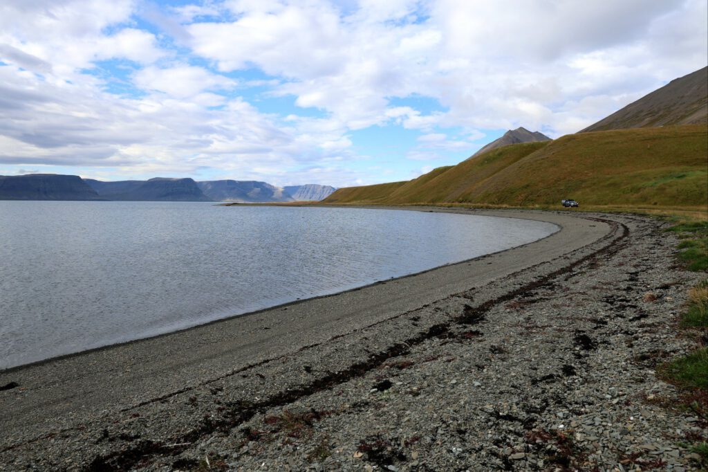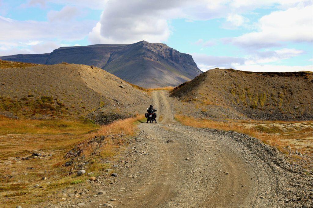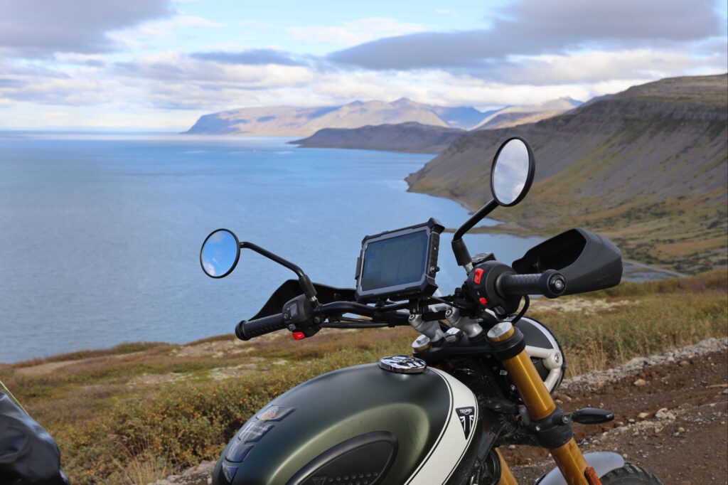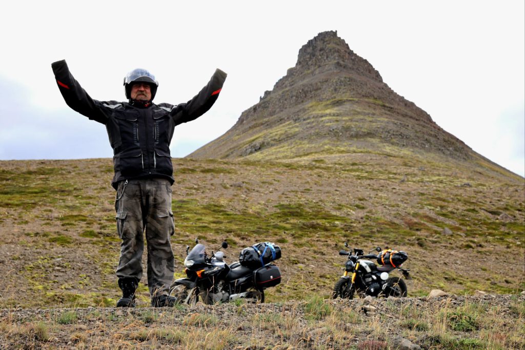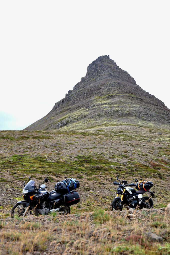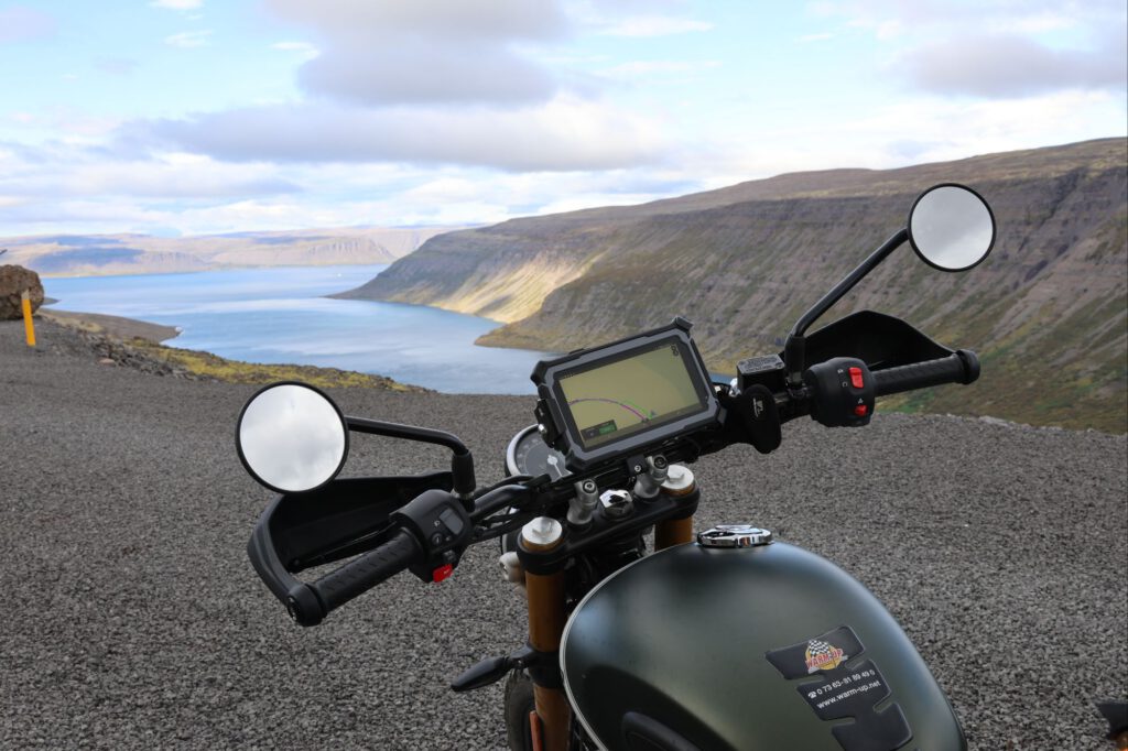 Die Zelte sind trocken geblieben in der Nacht. Nordlichter gab’s leider wieder keine – zu bewölkt. Kurz nach 9 Uhr ist alles verstaut und auf die Mopeds verpackt. 70% Straße und ca 30% Gravelroad sind heute geplant nach Bolugarvik. Es geht rauf auf die Berge und wieder runter zu den Fjorden. Es ist trocken bei 12 Grad. Oben auf den Bergen pfeift der eiskalte Nordwand und es sind schon mal 7°. Eigentlich müsste man alle paar 100m anhalten um die fantastische Landschaft festzuhalten. Beschreiben kann man das nicht wirklich, man muss es erlebt erlebt haben.
