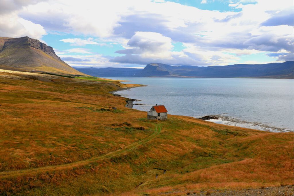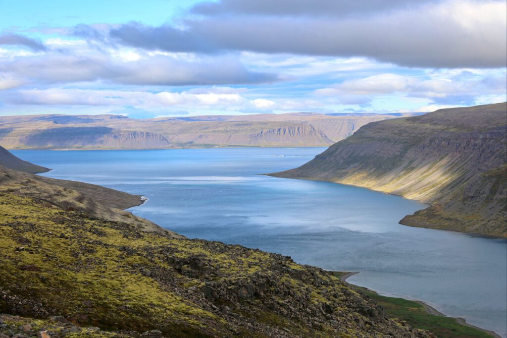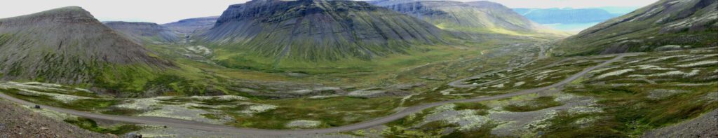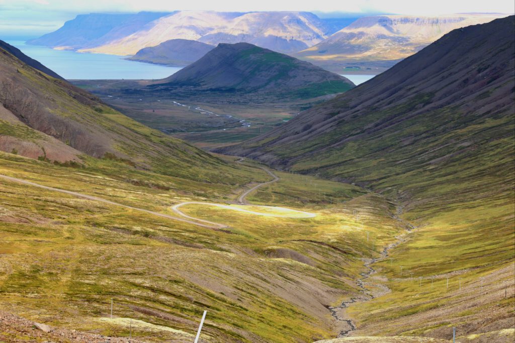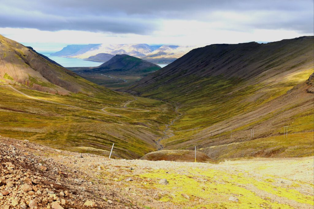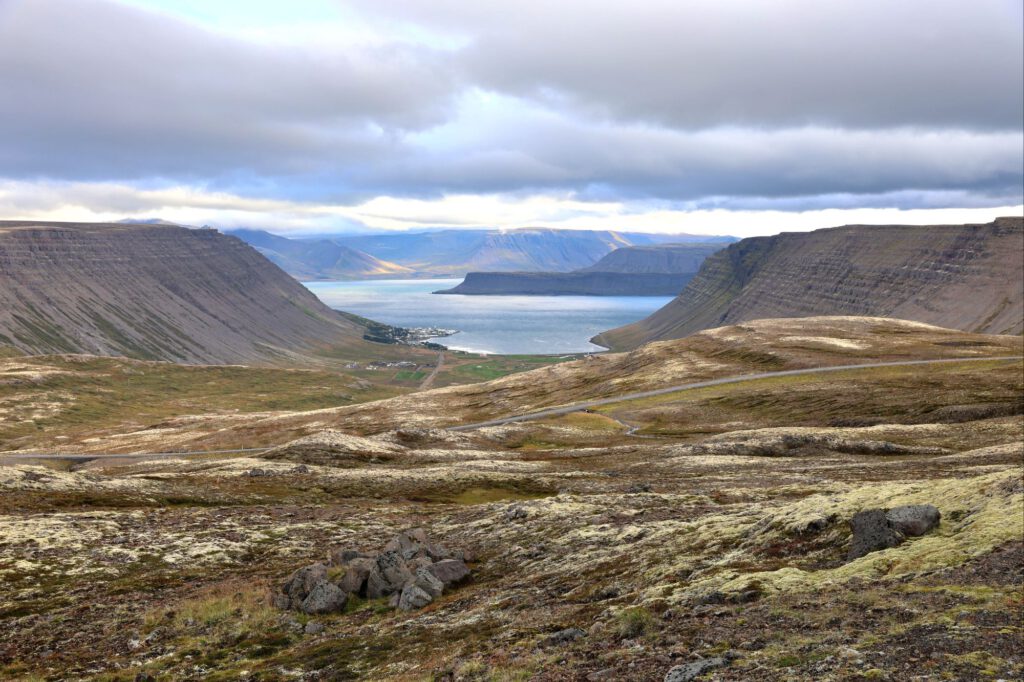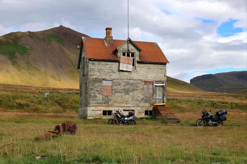 Die Zelte sind trocken geblieben in der Nacht. Nordlichter gab’s leider wieder keine – zu bewölkt. Kurz nach 9 Uhr ist alles verstaut und auf die Mopeds verpackt. 70% Straße und ca 30% Gravelroad sind heute geplant nach Bolugarvik. Es geht rauf auf die Berge und wieder runter zu den Fjorden. Es ist trocken bei 12 Grad. Oben auf den Bergen pfeift der eiskalte Nordwand und es sind schon mal 7°. Eigentlich müsste man alle paar 100m anhalten um die fantastische Landschaft festzuhalten. Beschreiben kann man das nicht wirklich, man muss es erlebt erlebt haben.